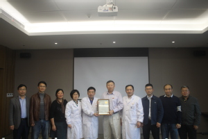 随后陈卫昌书记致辞,充分肯定了附一院骨科的学科发展和骨科研究所的建设成果,希望研究所在陈棣教授的加入后,能够不忘初心,砥砺前行,迈向新高度。随后,陈卫昌书记为陈棣教授佩戴苏州大学校徽,颁发苏州大学讲座教授聘书,并与研究所主要领导合影留念。