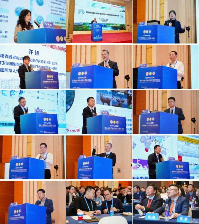 在大会主题报告中,同济大学朱融融教授针对脊髓损伤长度大、电生理恢复不全的难题,利用含LDH纳米材料的支架和iPSC构建了高效成熟分化的胸腰段脊髓类器官,应用于脊髓的损伤修复。浙江大学陈晓教授针对肌腱损伤中易出现瘢痕纤维化的问题,解析了正常生理胶原稳态的关键细胞亚群和调控机制,以及病理情况下胶原退变循环的新靶点和机制,开发了基于胶原结构和成分调控的腱骨再生新技术。香港理工大学赵昕教授揭示了ATP在骨稳态中的作用,通过结合不同高斯曲率的支架材料和L-Arg,在促进力学分散的同时,利用L-Arg诱导形成ATP,进一步促进骨形成和血管再生,并抑制破骨细胞的活性,达到维持骨稳态的功能。厦门大学许韧教授聚焦于骨特异性神经-血管网络在促骨功能和临床应用中的潜能,揭示了感觉神经-骨骼干细胞功能正向偶联、交感神经-骨骼干细胞功能负向偶联的现象,提出并验证了“骨骼干细胞神经生态位”的概念。