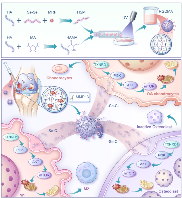 论文题目:Organic di-selenide hydrogel microspheres for multimodal treatment of osteoarthritis