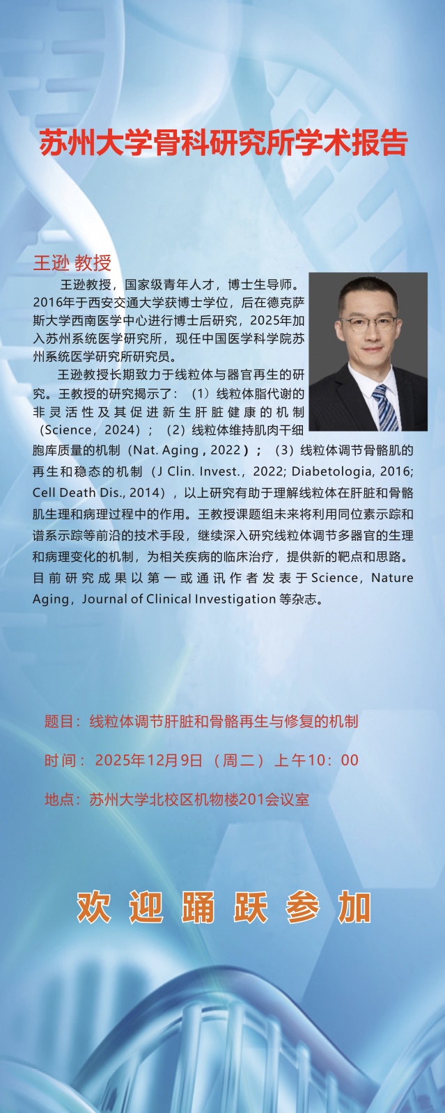 骨科研究所学术报告:线粒体调节肝脏和骨骼再生和修复的机制